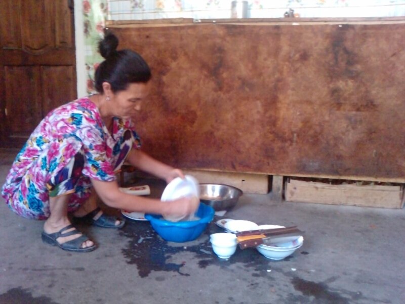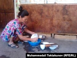 Биз карапайым адамдын ашканасына токтодук. Алты орундуу ашкана Султан Жороевге таандык. Ал Чычкандан миң чакырымдай алыс жактагы Лейлек районунан үй-бүлөсү менен келген. Мында эки кызы аялы менен иштейт. Дагы бир баласы айылда үй карап калган, ал эми калган экөө студент.