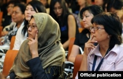 Жыйынга Борбор Азия өлкөлөрү менен Ооганстандан жүз чакты аял катышууда. Симпозиумдун ачылышында сөз сүйлөгөн кыргыз президенти Роза Отунбаева өлкө экономикасында аялдардын салымы чон экендигин белгиледи.